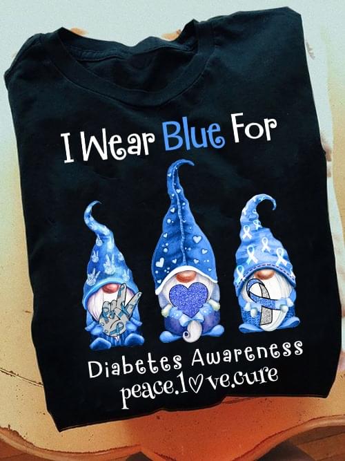 I Wear Blue For Diabetes Awareness Peace Love Cure Gnomes Shirt
