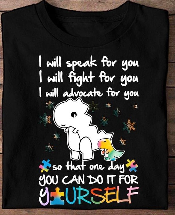 I Will Speak For You I Will Fight For You I Will Advocate For You So That One Day You Can Do It For Yourself Autism Dinosaur Shirt