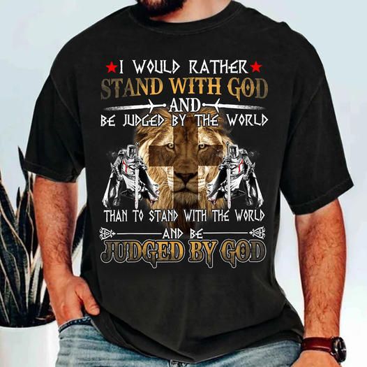 I Would Rather Stand With God And Be Judged By The World Than To Stand With The World And Be Judged By God Lion The Holy Cross Shirt