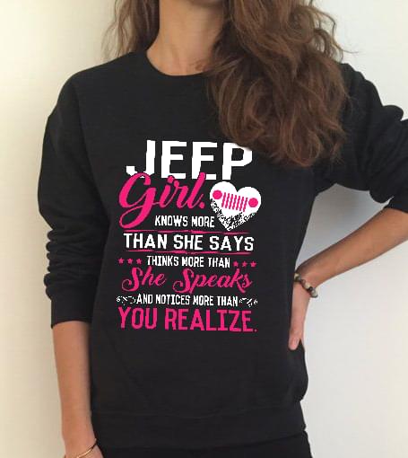 Jeep Girl Knows More Than She Says Thinks More Than She Speaks And Notices More Than You Realize Shirt