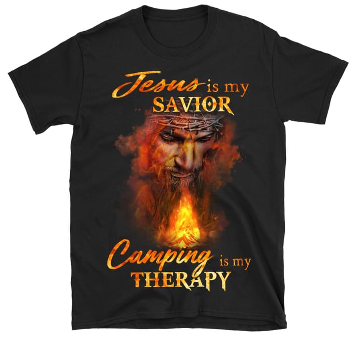 Jesus Is My Savior Camping Is My Therapy God Fire Shirt