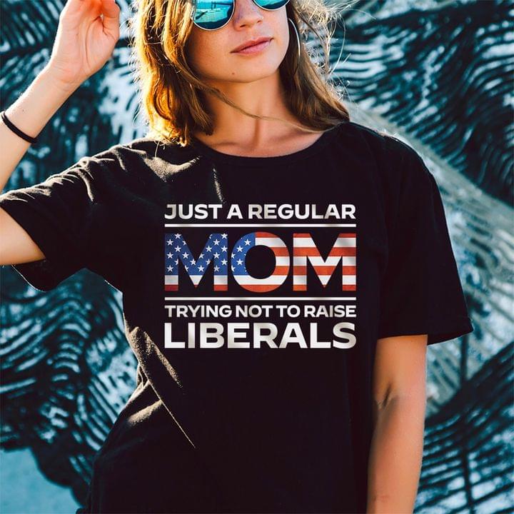 Just A Regular Mom Trying Not To Raise Liberals Flag Of America Family Shirt