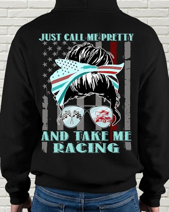 Just Call Me Pretty And Take Me Racing Flag Of America Lady Girl Shirt