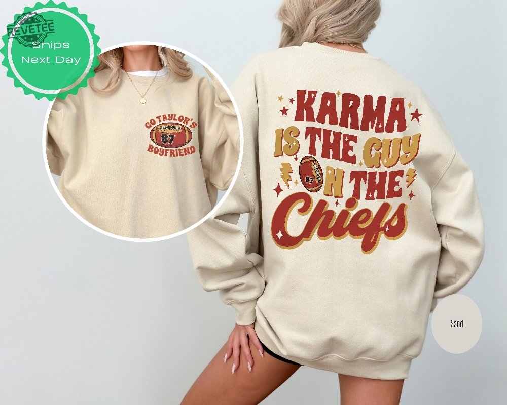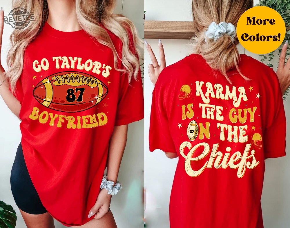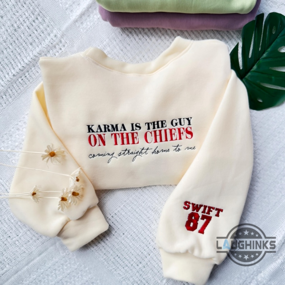 Karma Is The Guy On The Chiefs Coming Straght Home To Me Swift 87 Embroidered Shirt Laughinks 1