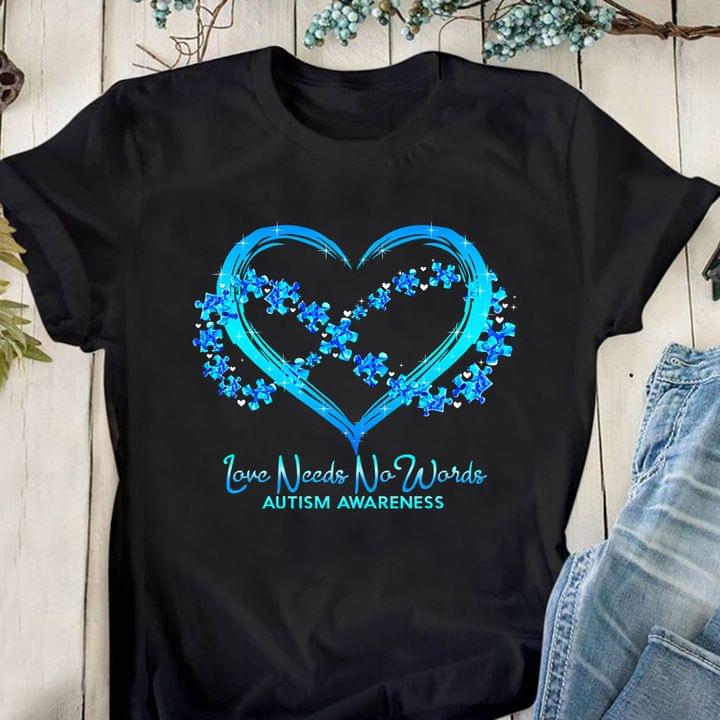 Love Needs No Words Autism Awareness Blue Heart Infinity Puzzles Shirt