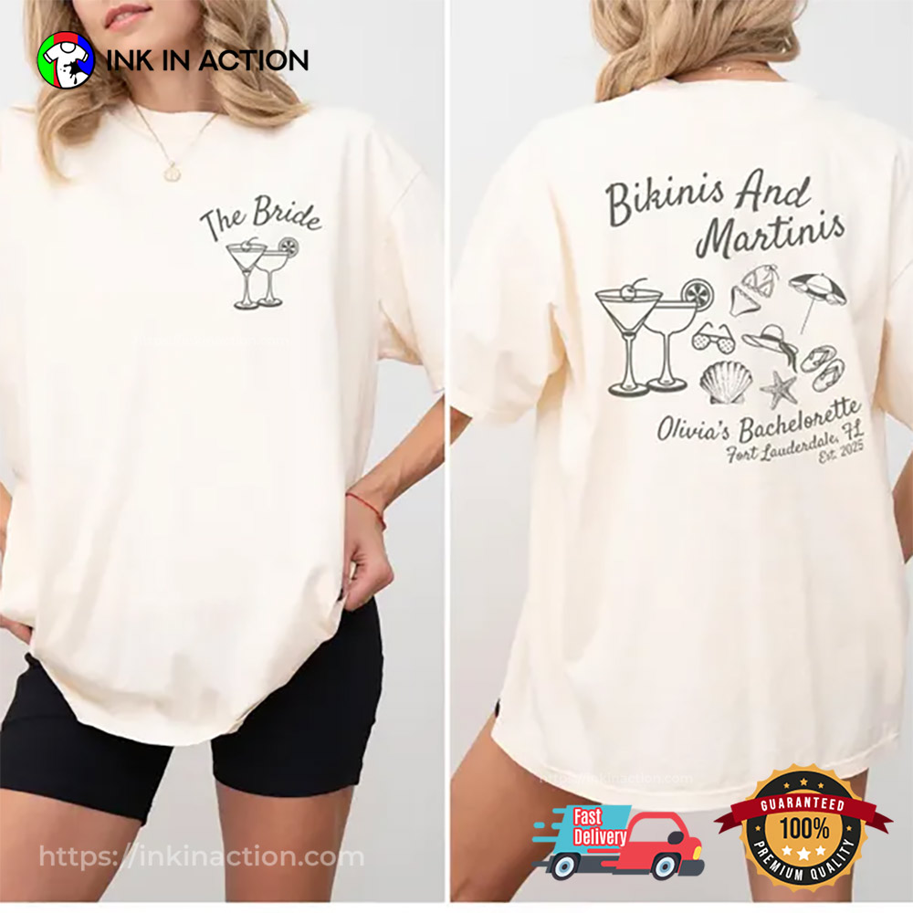 Martinis And Bikinis Bachelorette Beach 2 Sided Comfort Colors Shirt