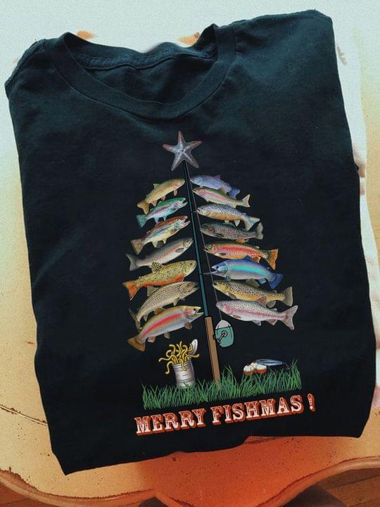 Merry Fishmas Fish Christmas Tree Fishing Shirt