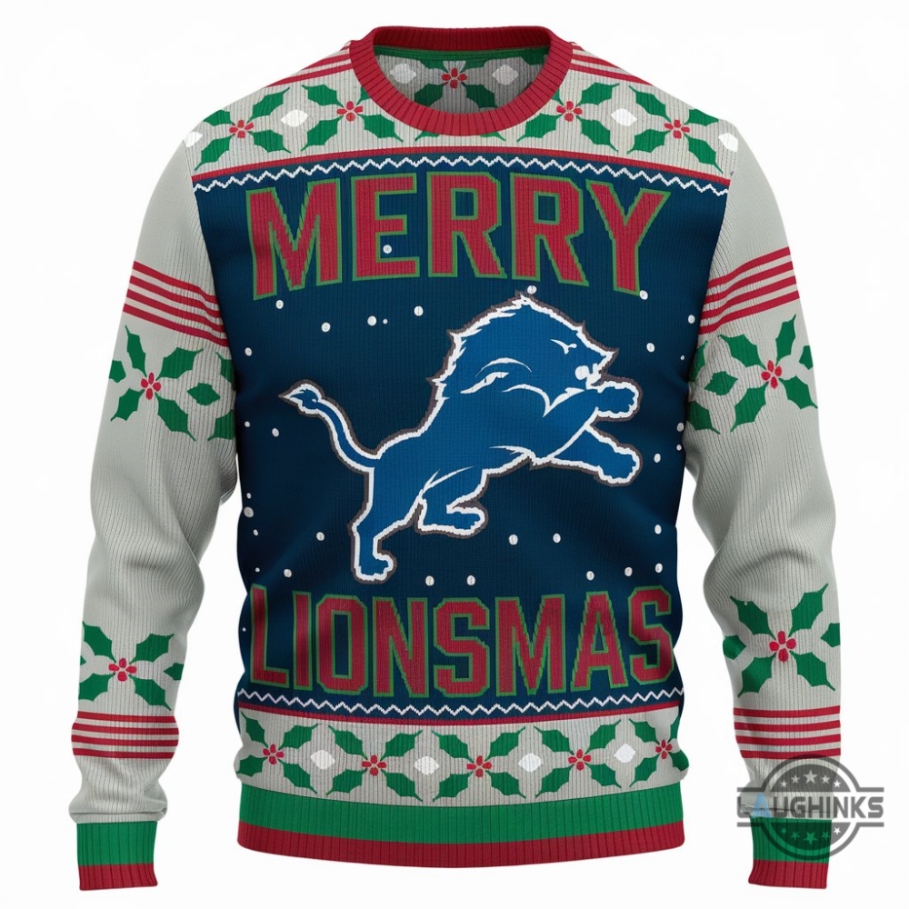 Merry Lionsmas Artificial Wool Sweatshirt Football Detroit Lions Merry Christmas 2024 Ugly Sweater Laughinks 1