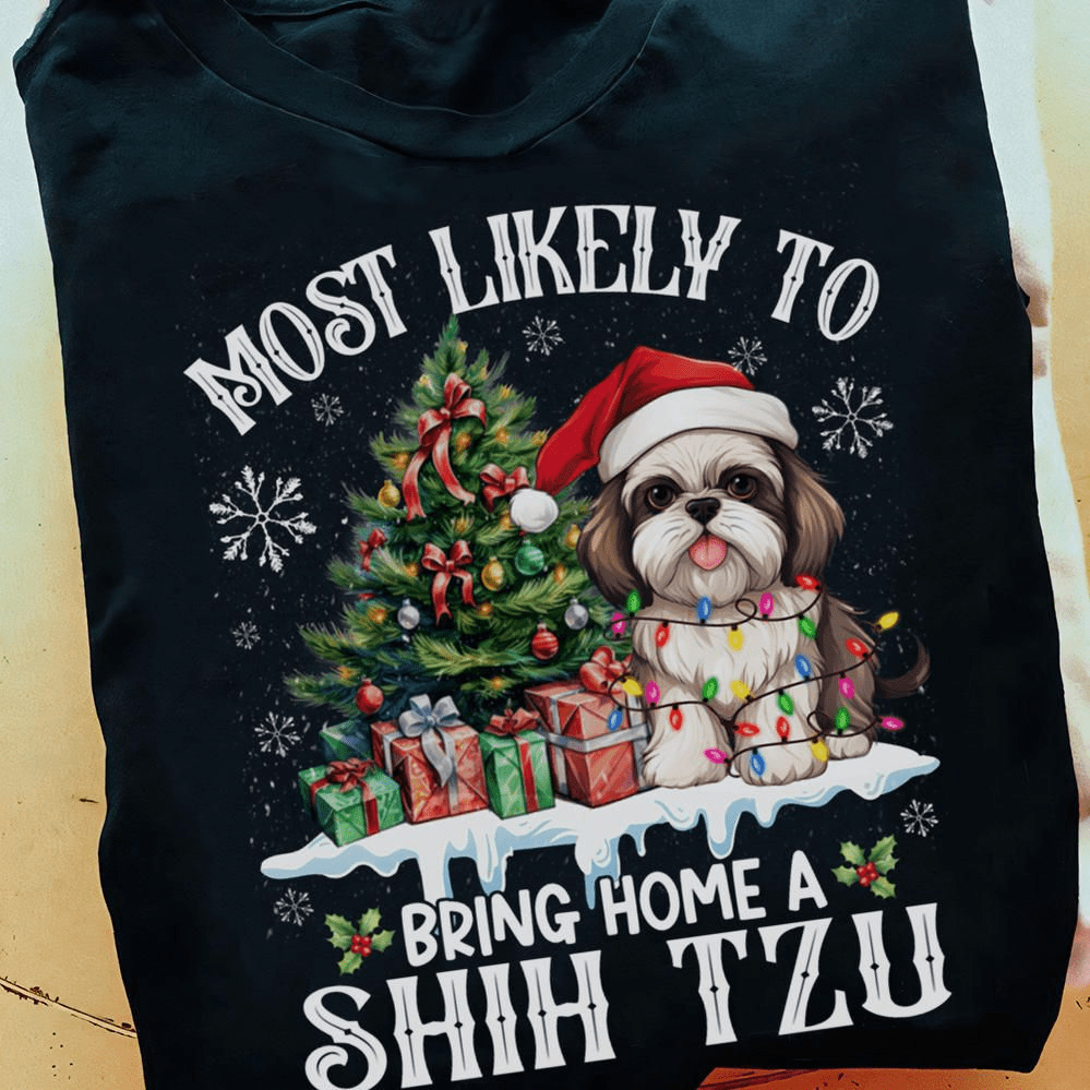 Most Likely To Bring Home A Shih Tzu, Xmas Dog Lover T-shirt