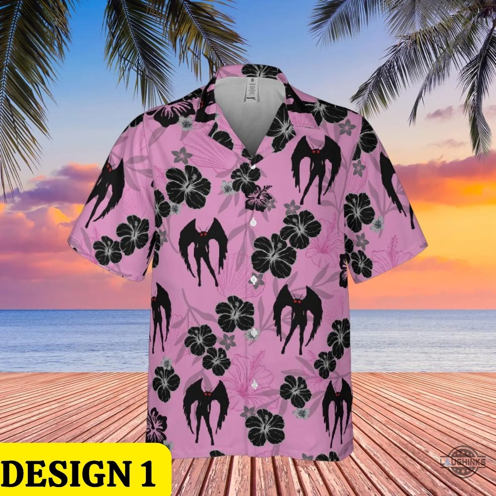 Mothman Button Up Shirt Mothman Hawaiian Shirts And Shorts Mothman Halloween Costume Green Grey Pink Laughinks 1