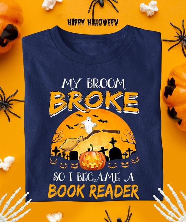 My Broom Broke So Now I Became A Book Reader Witch Broom Pumpkin Ghost Halloween Shirt