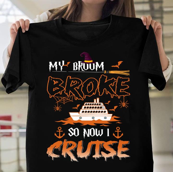My Broom Broke So Now I Cruise Witch Hat Ship Halloween Shirt