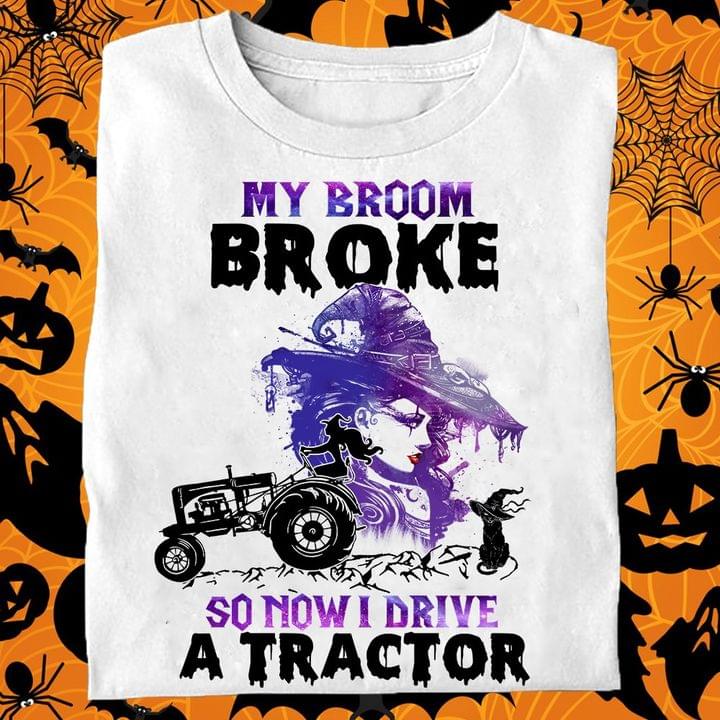 My Broom Broke So Now I Drive A Tractor Halloween Witches Shirt