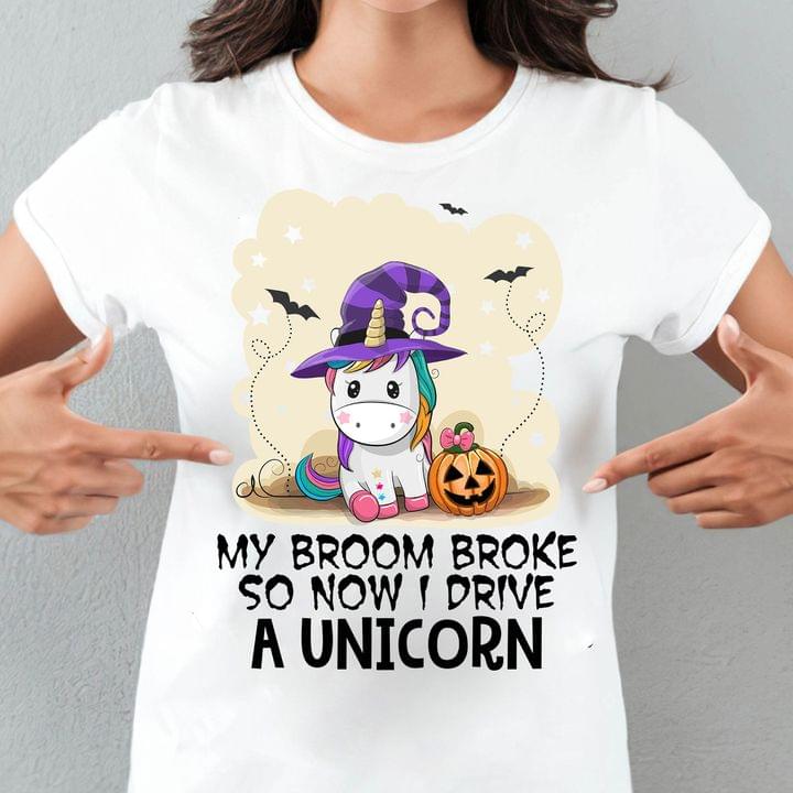 My Broom Broke So Now I Drive A Unicorn Witch Pumpkin Shirt