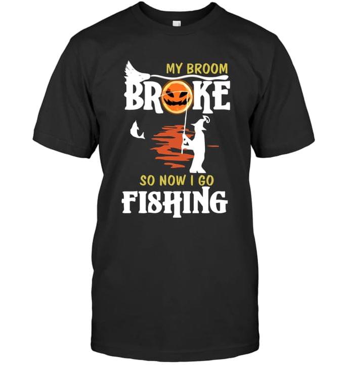 My Broom Broke So Now I Go Fishing Witch Halloween Shirt