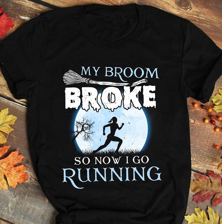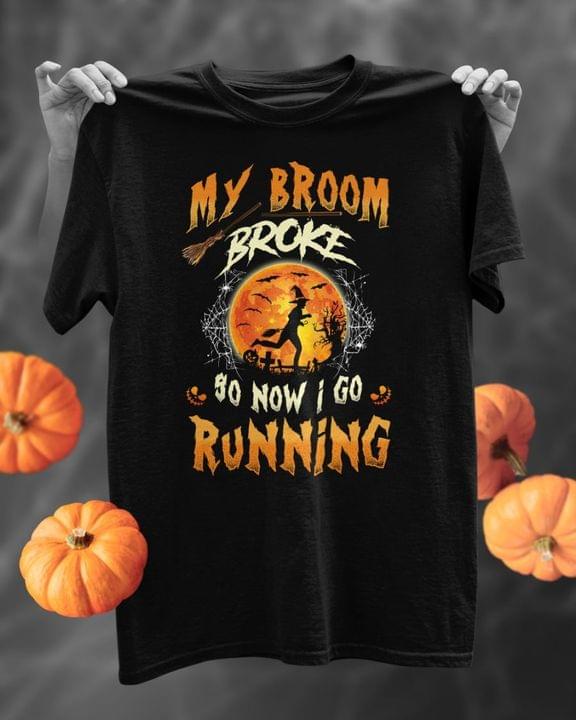 My Broom Broke So Now I Go Running Halloween Shirt