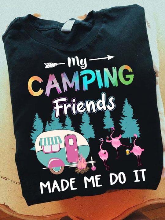 My Camping Friends Made Me Do It Flamingoes Fire Motor Home Shirt