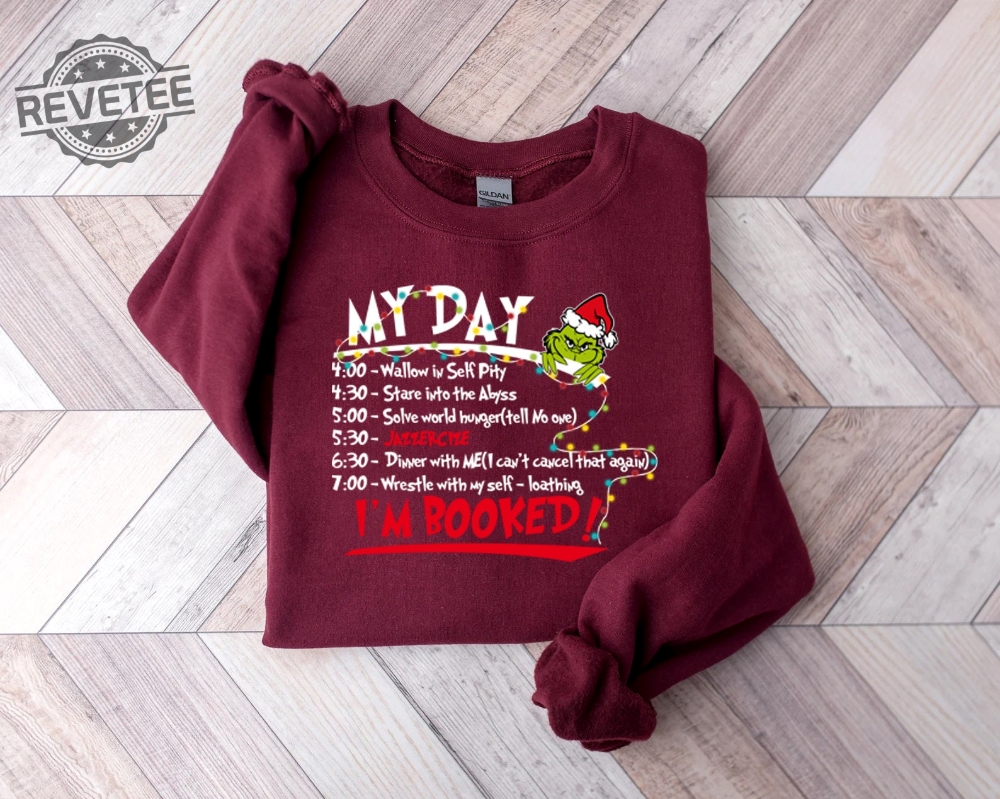 My Day Im Booked Sweatshirt The Grinch Christmas Schedule Sweatshirt Womens Christmas Sweatshirt Grinchmas Shirts Christmas Graphic Tee Unique